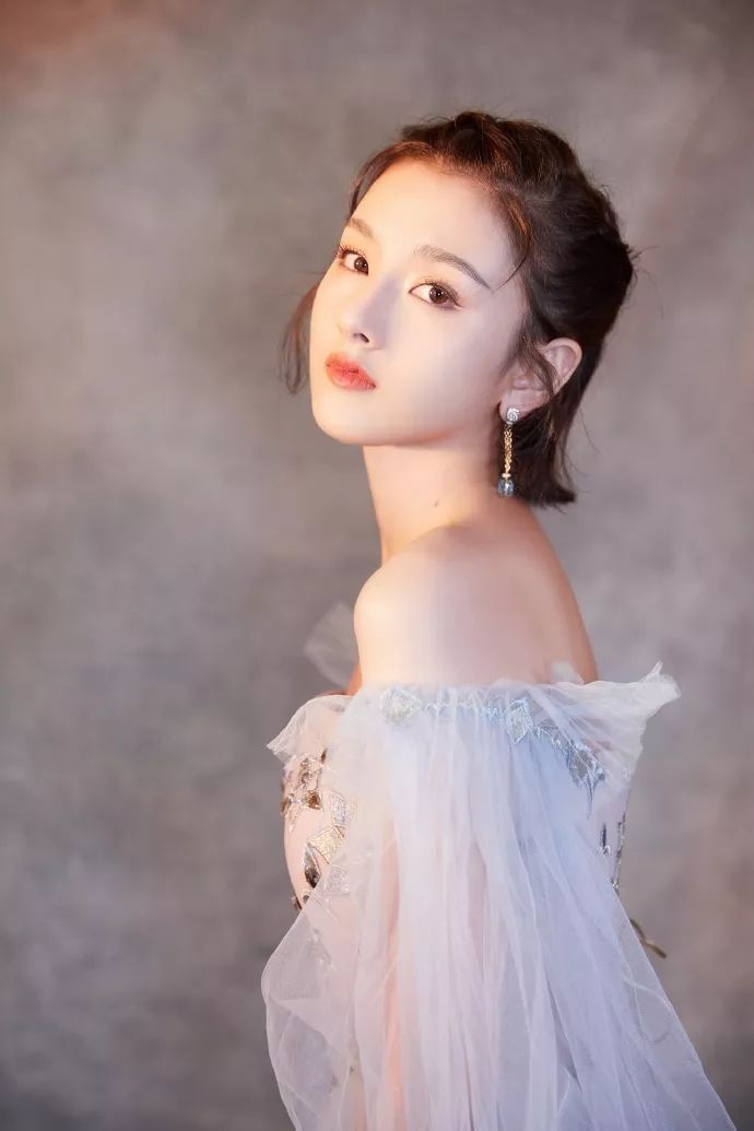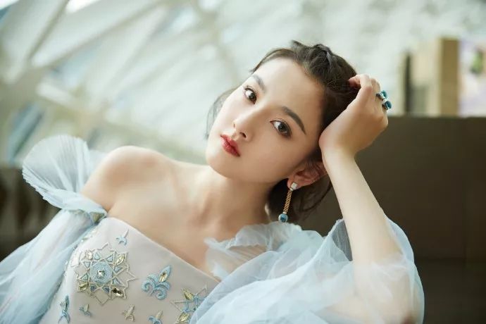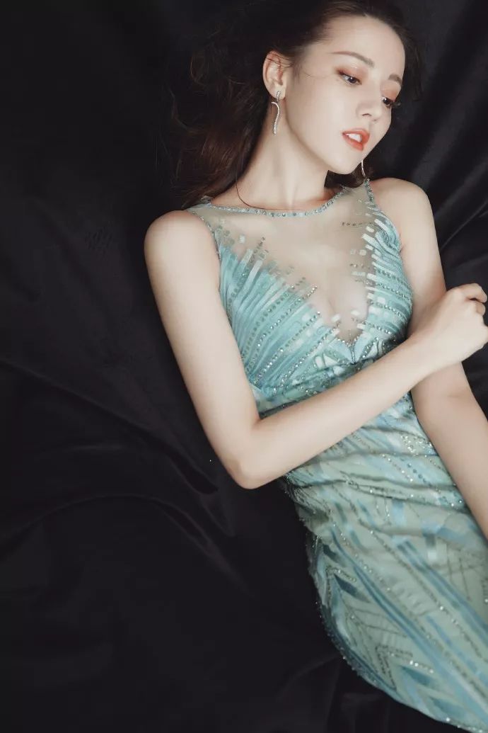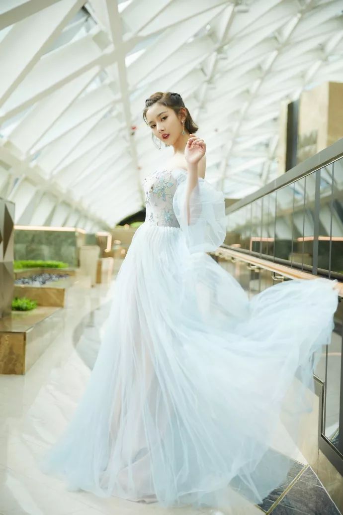 抹胸纱袖,精致的褶皱设计凸显出闪光少女的独立自信,当时这件雾霾蓝仙女裙还登上了热搜榜。