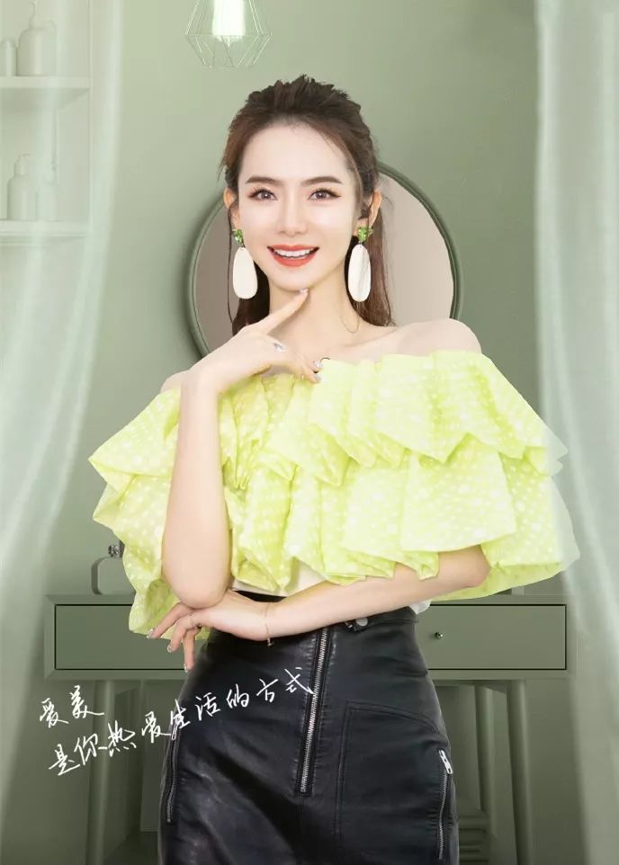 现身《Beauty小姐》第二季节目录制中的的这件荧光绿波点上衣搭配皮裙造型,也非常惹眼了。