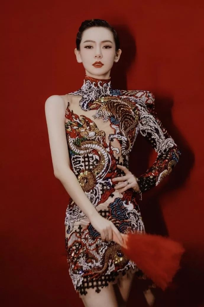 有“凤凰于飞”自然少不了“百鸟朝凤”,另外一家大当家的旗袍造型,俏丽有颇具威严,一看就是管事儿的。