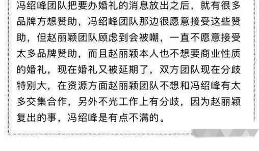 原标题:冯绍峰赵丽颖传将办婚礼,两人团队因赞助闹分歧,明星结婚真