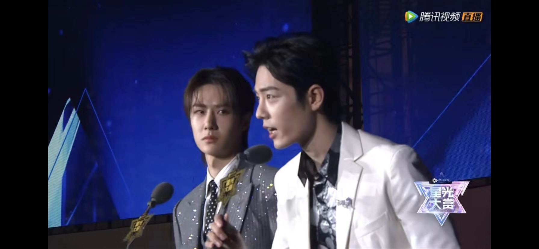 现场有很多王一博和肖战的粉丝,他们都举着灯牌不断叫唤着粉丝的名字,肖战和王一博两人在舞台一点也不尴尬,感觉只是很紧张,王一博话比较少,而肖战话稍微多一点,两人领完奖之后,一起离开舞台。