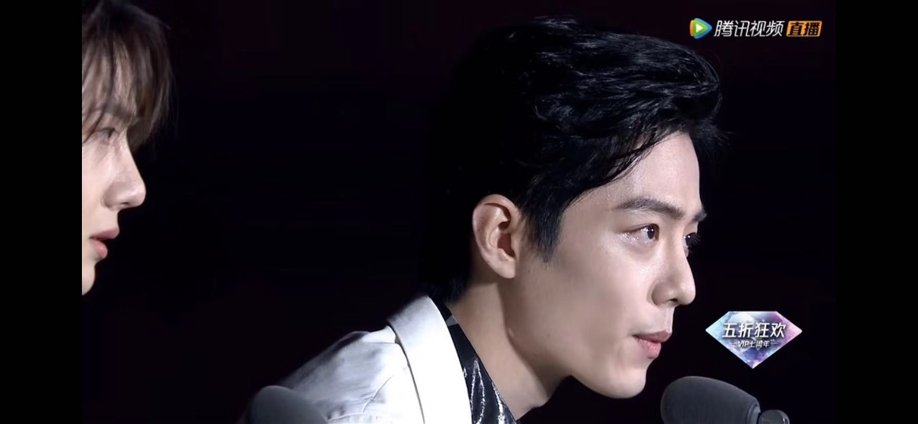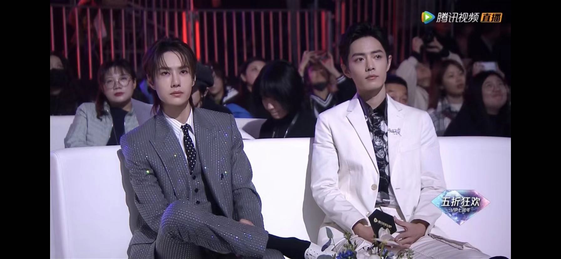 当张碧晨在演唱《陈情令》插曲《无羁》的时候,镜头一直追着肖战和王一博,因为他们俩要领奖,所以两人坐在一起,两人还进行短暂的交流,看到粉丝惊声尖叫,两人也是心欢喜。
