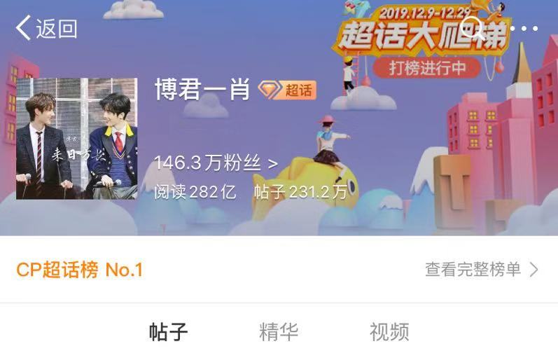 “博君一肖”是这部剧的CP粉账号,已经是CP超话榜第一名,而且CP粉们以偶像名义曾经捐款上百万元,比两人的唯粉捐款还多。