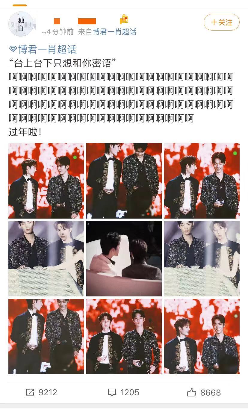 CP粉真的是嗨爆了,不过在肖战和王一博的超话里,很难看到两人同框,毕竟唯粉不希望现实将两人捆绑在一起。