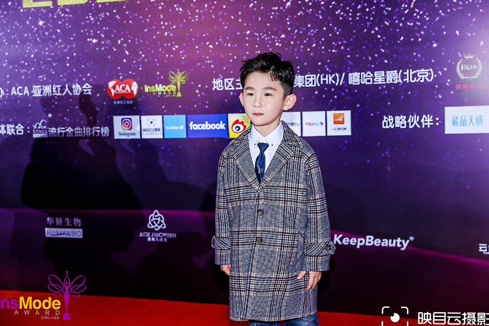 董城宇受邀出席此次盛典,小小年纪的他以一身阳光帅气的格子西装走上红毯,迅速吸引了全场的眼球与记者的镁光灯,瞬间成为媒体与摄影师的焦点。在数百家媒体和嘉宾、艺人的注目下,董城宇获得“年度最具潜力影视童星”并登台领取奖项,金艺绘教育集团董事长崔亮先生为其颁发奖项。帅气的外形,可爱萌萌的形象让他在此次盛典中闪耀全场,同时也给在场所有来宾留下了深刻的印象。董城宇获得此次奖项实至名归作为是全场年纪最小的小朋友在这里祝他心愿成真,也相信在未来他将给大家带来更多的惊喜。