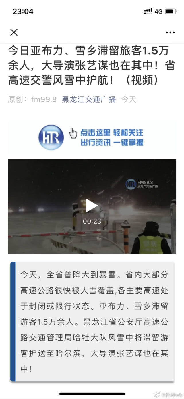 大概还是有些意难平吧,陈婷随后又发了一条动态,说明了事情缘由。原来黑龙江因雪太大造成了雪乡滞留1.5万余人,张艺谋也在其中。这家媒体全面讲述了事情的经过,力证了张艺谋一家人的清白,并未有什么特权。之后网友们也是纷纷力挺张艺谋家人。