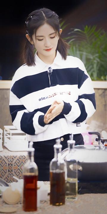 穿着黑白大条纹运动服的谢娜,扎上双马尾,满满的少女感扑面而来。