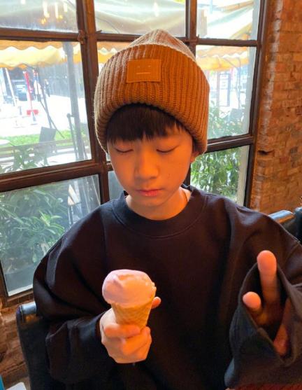 天天自己是有微博的,空闲的时候自己也会传一些他和妹妹的照片,这张便是天天最新的晒照,手捧着甜筒戴着一顶潮流的帽子,故作闭眼进行摆拍。