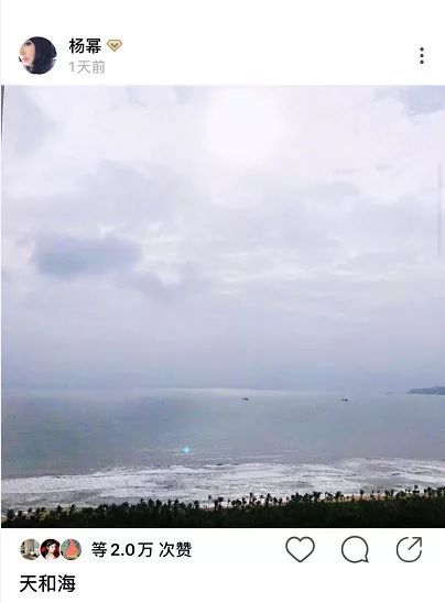 眼尖的网友很快发现,杨幂一天前就曾在社交平台上晒出一张类似的照片,并配文“天和海”。