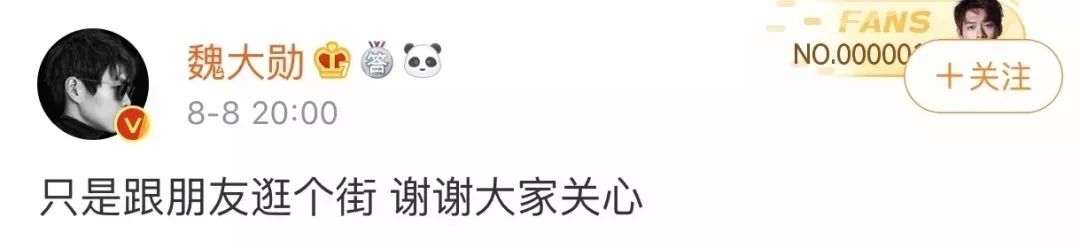 当时魏大勋发文否认称,只是跟朋友逛个街,谢谢大家关心。