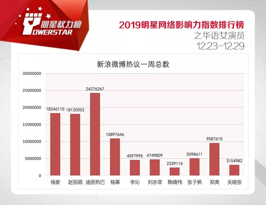 原标题:明星网络影响力指数排行榜第231期榜单之华语女演员Top