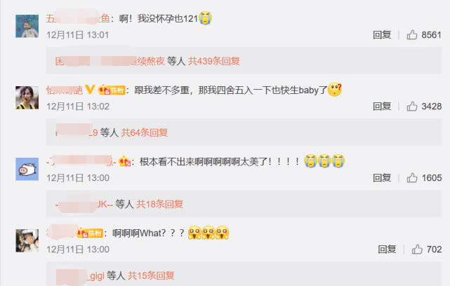 明星比普通人更注重身材管理,所以当看到怀孕36周才121斤时,大家都表示无比惊讶,甚至有些羡慕嫉妒:“我没怀孕也121!”“跟我差不多重,那我四舍五入一下也快生baby了!”“根本看不出来,太美了”……