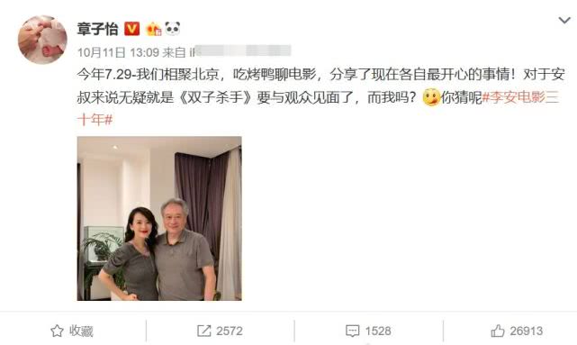 其实,10月11日章子怡发了一张与李安的合照,当时便有网友猜测她已经怀孕了。