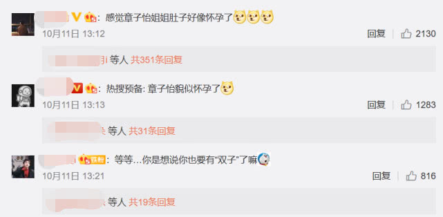 有眼尖的网友猜测:“感觉章子怡姐姐肚子好像怀孕了”、“热搜预备: 章子怡貌似怀孕了”。因为当时没有确切的回应,章子怡貌似怀孕一事暂且被搁置了,直到出席东京国际电影节担任评审团主席时,她才正式公布喜讯,收获满满的祝福。