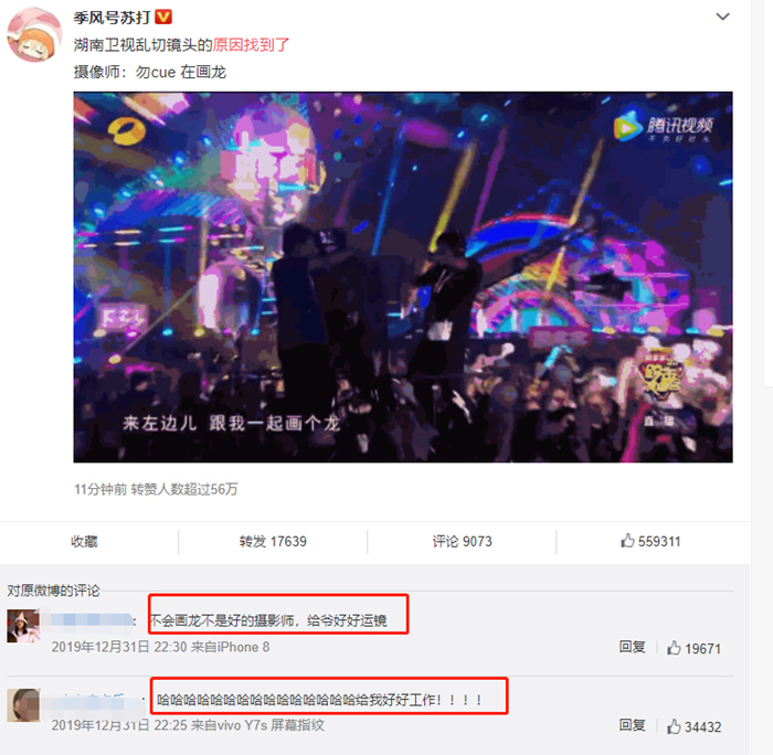 12.说实在的,今年芒果台阵容A爆,舞美A爆,就是负责摄像负责镜头切换的老师拖后腿。画面晃动,瞎切换,网友猜测,恐怕都去画龙画郭富城了,或者左手右手一个慢动作。