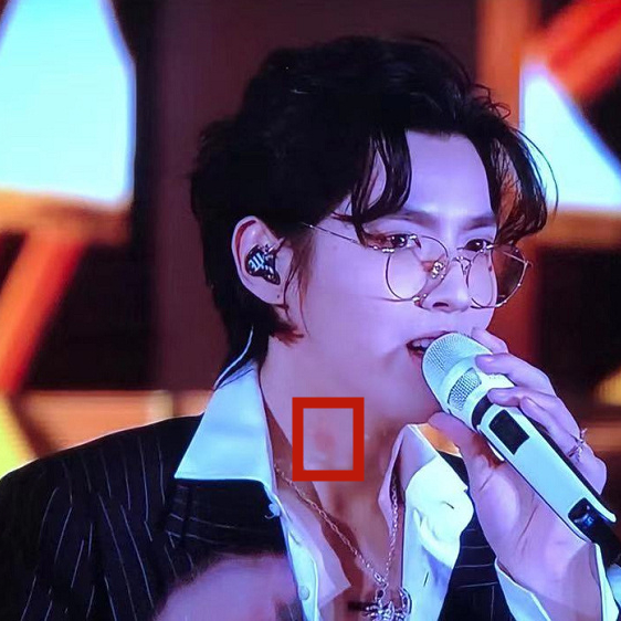 镜头中他脖子上有一个痕迹,类似于吻痕。后来官方也是赶快出来否认。