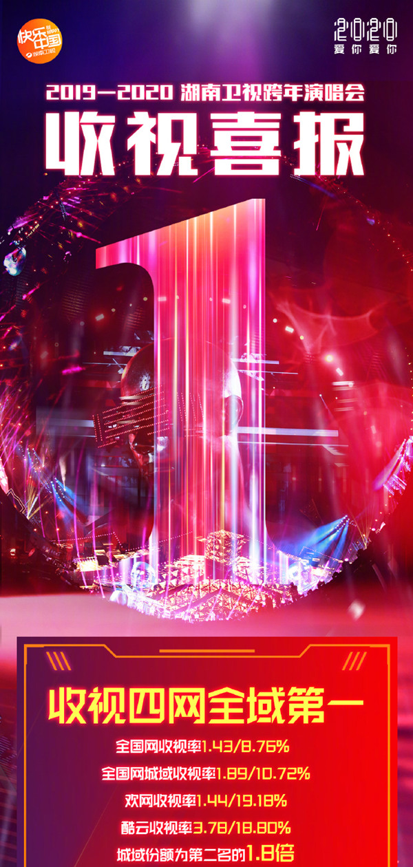 22.就在今天,2020跨年演唱会的收视率情况出来了。全国网、酷云数据、欢网湖南卫视领先;csm59城csm35城收视江苏卫视领先。