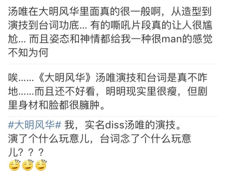 总之,网上对于汤唯在《大明风华》中的表现,是“大失所望”,一直不断有声音说汤唯演技糊了。