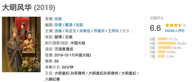 可播到现在,口碑并不理想,比起去年开播时备受争议,豆瓣评分最终只达到7.4的《如懿传》,《大明风华》的口碑还要更差。