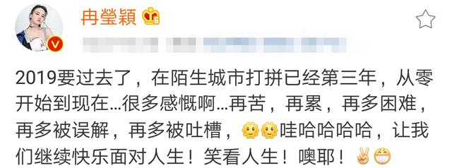 冉莹颖写到:“2019要过去了,在陌生城市打拼已经第三年,从零开始到现在…很多感慨啊…再苦,再累,再多困难,再多被误解,再多被吐槽,哇哈哈哈哈,让我们继续快乐面对人生!笑看人生!噢耶!”与此同时,她配发了三张自拍照,其中一张出现了邹市明的身影,此时的邹市明看起来有些提不起精神,不过还算尚可。