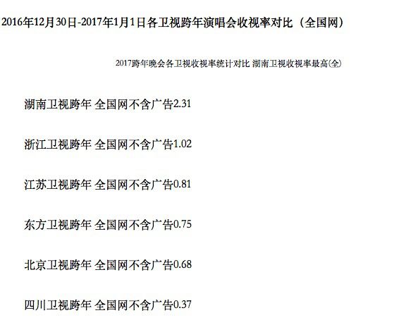 今年的卫视跨年晚会,已告一段落。谁是你心目中的最佳“表演人选”,谁又是展现实力、资源最强的平台?每个人心中评选定论虽不尽相同,但数据证明,湖南、浙江如今已然有着“天壤之别”。