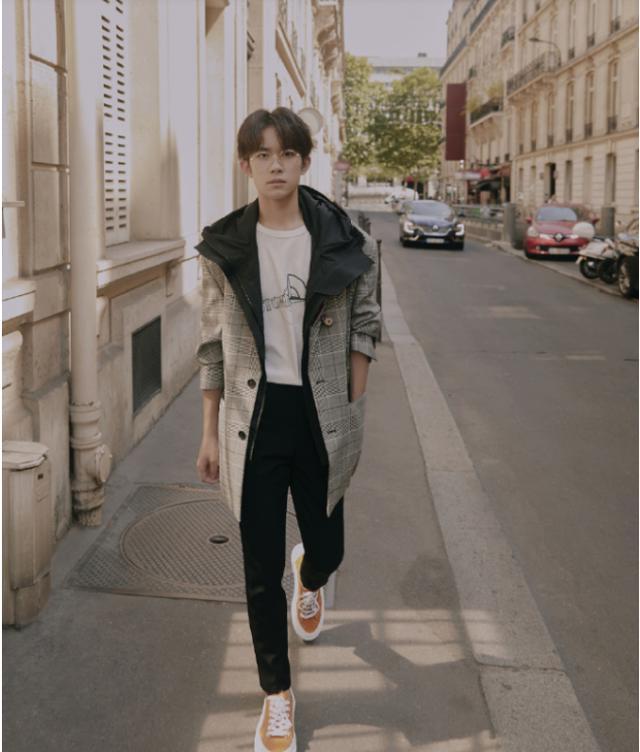 易烊千玺穿着格子外套,戴着金丝眼镜,少年温软如初!安静的背景下带着几分诗意,于巷尾街头信步漫游,好一个温润的文艺少年啊!