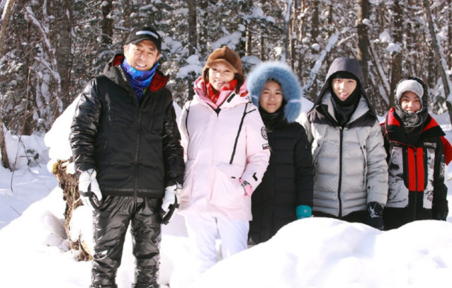 近日,张艺谋的妻子陈婷带着三个孩子到雪乡探班正在拍新片的老公。
