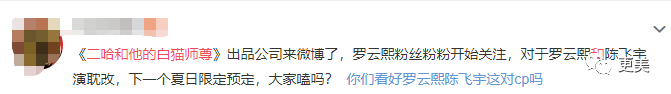 再就是最近被说很多的《二哈与他的白猫师尊》,传闻这是由陈飞宇和罗云熙主演,“翻云覆宇”的cp已经浩浩荡荡炒了起来。
