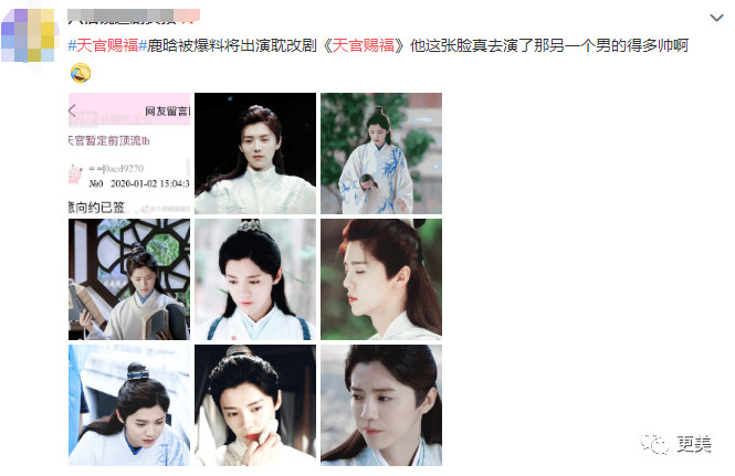 虽然鹿晗形象的确与谢怜有一些贴合,但现在来看,并不能排除是在溜粉,毕竟原作者墨香铜臭现在还“下落不明”,确定还能卖版权?