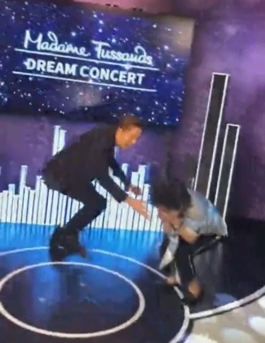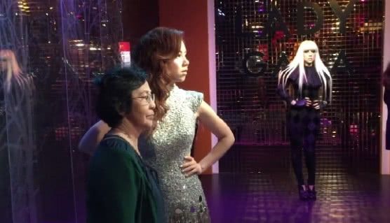 不过,陈伟霆装得真挺像,维持那个动作三分钟左右全程没动过,难怪陈妈被蒙在鼓里。正当陈妈妈沉迷于摆pose与儿子蜡像合照时,陈伟霆突然身子一动,真是吓坏了一旁的陈妈,双手捂着脸尖叫后退了好几步,这是人被吓到时的本能反应。