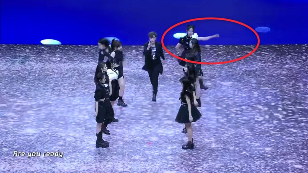表演到了集体舞蹈这一part,杨超越开始车祸现场。