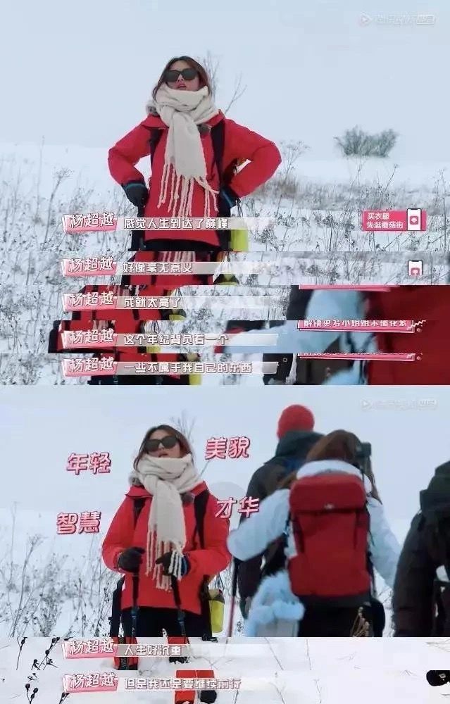 如某节目上,她能走着走着,突然感慨一下人生:“人生好沉重,但我还要继续前行。”