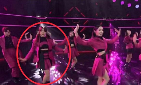 其他队员都在卖力跳舞,她却把节奏降了下来,默默站在自己的位置。