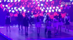 动图感受一下,队列最后的杨超越,完全就像一个特邀观众上台和女团互动的妹子,哪有这样的女团成员哦!