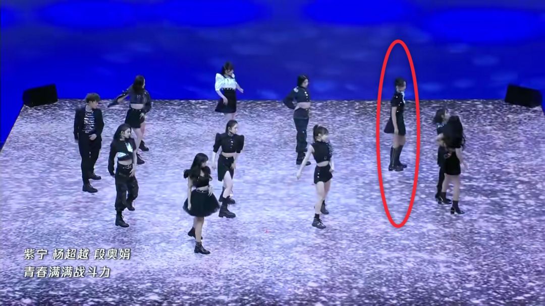 在之后成团的表演中,杨超越不仅把舞蹈动作记错,还慢了半拍.....