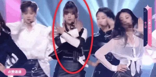 截图的画面更能一眼看出来,杨超越没有跟上其他队员的动作。