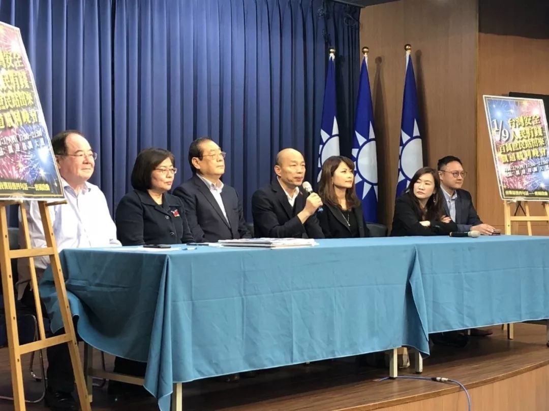 没有抢到“选前之夜”凯道路权的韩国瑜阵营,将在1月9日召开“凯道大会师胜利晚会”。6日上午,国民党2020候选人韩国瑜携国民党副主席兼秘书长曾永权、台北市党部主委黄吕锦茹、新北市党部主委李乾龙等人举办“胜利晚会行前记者会”,展现“凯道胜利晚会”的三大诉求:“号召百万庶民上街头”、“蓝军大团结,知识青年大集结”、“夜袭歌词密码启动”。