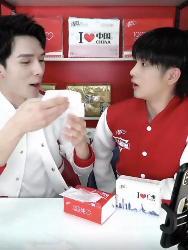 同样是在李佳琦的直播间里,两个人之前并没有串过直播内容。李佳琦在直播间里说,周震南万元红包,大家快抢,买纸巾,周震南一听,眼里无助得看李佳琦,紧紧抓着他的手,李佳琦说,我给我给。在之后李佳琦接受采访说,自己当时觉得有点意外,他的反应不是一个一般艺人会有的反应,李佳琦觉得他很可爱。