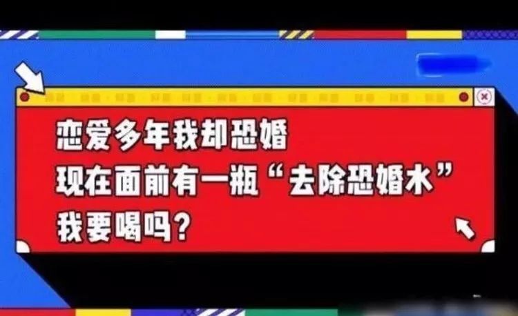 恐婚族是近年来比较热门的一个词语,形容害怕失去自由,害怕承担责任,害怕风险,恐惧婚姻的未婚男女。最新一季的奇葩说都有一期专门针对恐婚的辩题“恋爱多年我却恐婚,现在面前有一瓶去除恐婚水,我要喝吗?”