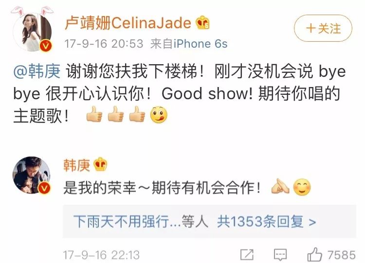 而韩庚与卢靖珊则很好地诠释了这一点,两人的结缘极为戏剧化,当年金鸡奖上见义勇为地一扶,便扶出了这份坚定的爱情。