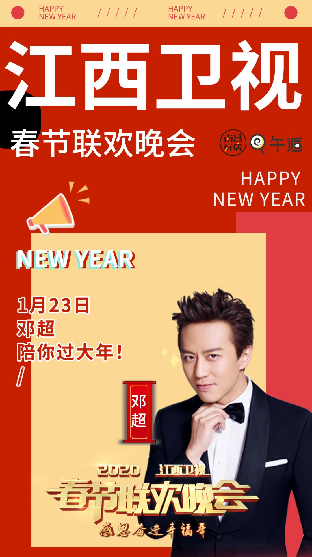 原标题:江西春晚 x 午逅 x 南昌好店 | 1月12日,午逅请你免费来江西卫视春晚看邓