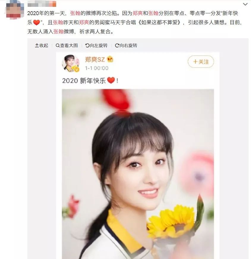 不过郑爽和张恒之间的恋情一直都似乎不被看好,尤其这次曝出分手后,郑爽的粉丝更表示恭喜。在新年零点那天,郑爽回归微博发了“新年快乐”的文案,而张翰也在同一时间发了类似的文案,不少网友更是表示希望张翰和郑爽能复合。