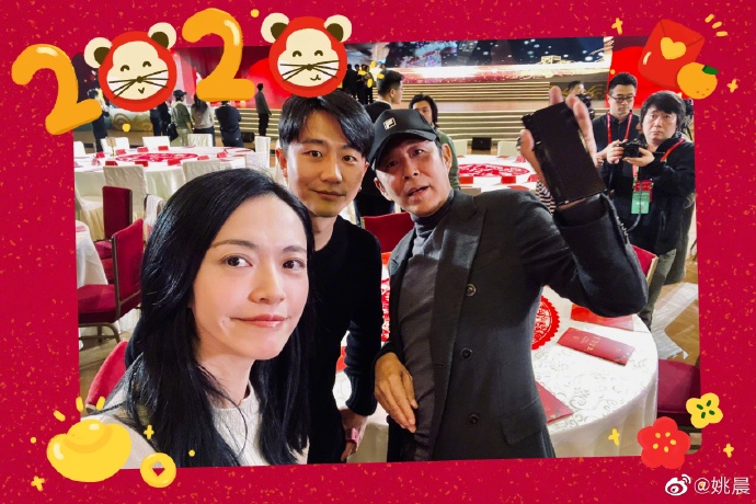 1月8日,临近过年,文艺界也举行了自己的春晚大联欢,许多明星都出席。刚刚姚晨晒出了后台照,和黄轩陈道明开心合影,还写着:“喜相逢”,后面加了“干杯”的表情包。