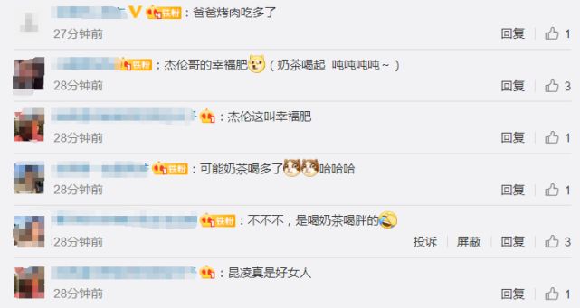 有不少粉丝在评论区表示“杰伦哥是幸福肥”、“可能奶茶喝多了”、“烤肉吃多了”看来杰伦的爱好还真是广泛,近几年来因为发胖可没少被粉丝调侃,希望周杰伦能够听从粉丝的劝告少吃一点,一家人要一直幸福呀。