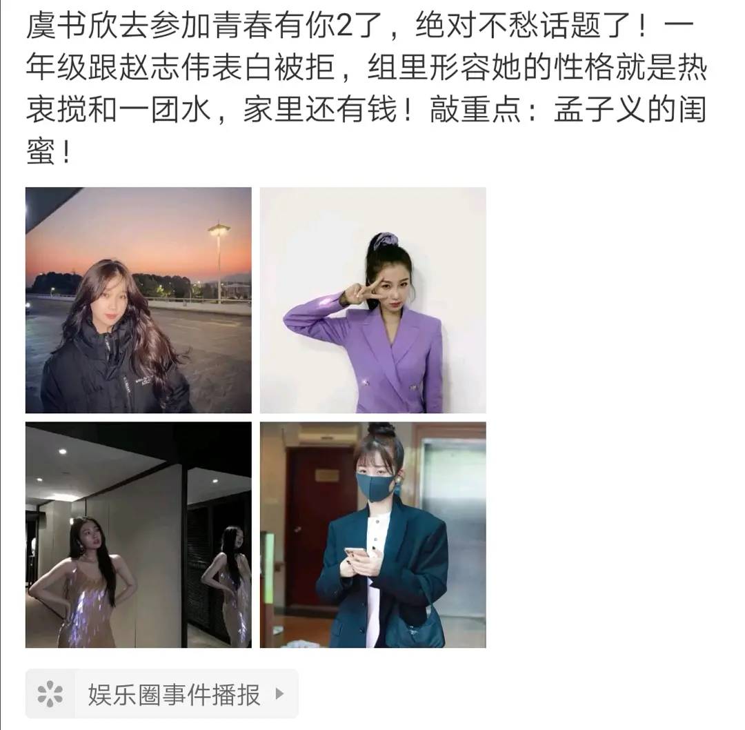 说到做到的虞书欣果然很活跃,最近又被曝出要去参加选秀《青春有你2》,之前所长写过,青2已经有了很多话题度很高的选手,离过婚的、已经出道的、和流量传过绯闻的,这回又加了个任性的大小姐。