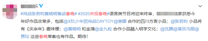 而目前央视春晚语言类节目终审正在进行中,此次阵容也是十分强大。据悉,当红流量肖战和谢娜将有合作,凭着《庆余年》火了一把的张若昀,在准备的节目中也含有剧中好玩的梗。