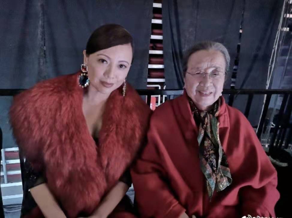 照片中的两人都穿着新年版大红色,邓萃雯化着精致的妆容,一对复古宝石耳坠为雯女增添了不少的气场,容嬷嬷李明启则是一副慈祥的老人模样,看起来和蔼可亲,差点忘了她是容嬷嬷。