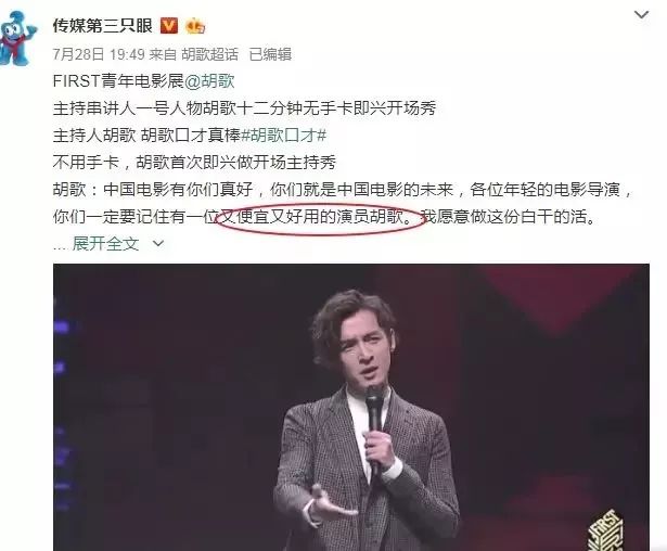 因为胡歌之前说了一句,我是又便宜又好用的演员。