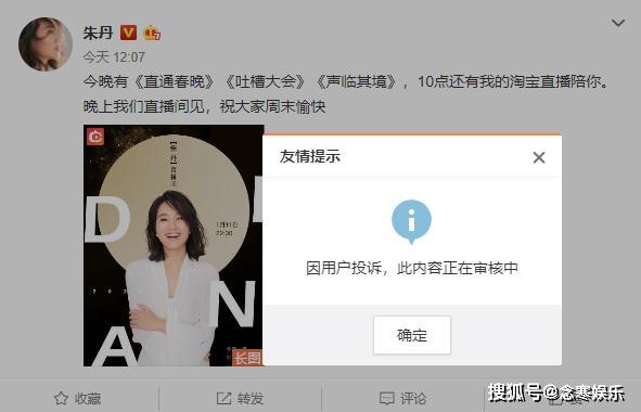 原标题:朱丹为节目做预热宣传,遭到网友集体投诉,疑跟维权声明