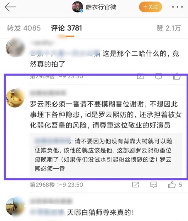 即便最后真的是罗云熙是一番,这个位子也许本来就是他的,但也不能在还没有官宣的时候就向官方施压吧?这样的行为是非常给罗云熙招黑的,会让大家觉得罗云熙也是一个喜欢争番位的男演员。是不是一番,罗云熙和他的团队会去协商和争取吧,也不可能说为了粉丝的意愿去改变,并且,最后剧开播了,还不是要宣传?